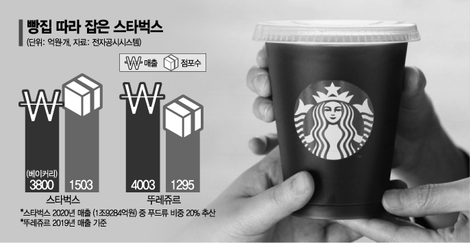 규제 적용 대상인 CJ푸드빌 뚜레쥬르의 2019년 매출이 약 4000억원이라는 점을 감안할 때 제과점 시장 2위를 위협할 정도로 성장한 것이다. 스타벅스는 지난해 매장을 1500개까지 늘렸다. 뚜레쥬르의 현재 매장 수는 1295개로 매장 수도 스타벅스가 앞선다. 스타벅스는 1500개에 달하는 전 매장에서 베이커리를 판매하고 있다. 지난해에는 매장에서 빵을 직접 굽는 ‘더양평 DTR점’도 선보이며 베이커리 사업을 계속 확대하고 있다.