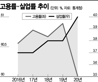 경제정책을 총괄하는 주무부처인 기획재정부는 최근 정부 출범 4주년을 맞아 배포한 ‘경제정책 추진성과 및 과제’ 자료에서 "(2019년까지) 일자리에서 정부 정책성과가 가시화되며 고용·분배 여건이 점차 개선됐다"고 자화자찬했다. 하지만 관련 지표를 살펴보면 상황은 전혀 다르다. 문재인 정부가 출범하기 이전인 2016년 기준 연간 고용률은 60.6%, 실업률은 3.7%였다. 그러나 4년 뒤인 2020년 기준 고용률은 60.1%, 실업률은 4.0%로 집계됐다. 고용률은 떨어지고, 실업률은 오른 것으로 고용지표가 악화된 것이다.