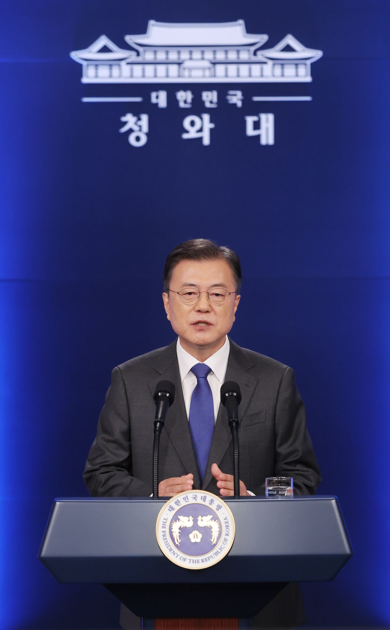 문재인 대통령이 10일 청와대 춘추관 대브리핑룸에서 취임 4주년 특별연설을 하고 있다. 2021.5.10 [이미지출처=연합뉴스]