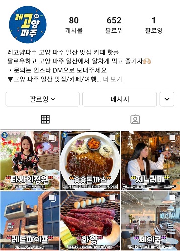 한편 계정 보유 팬층이 고양시 35% 파주시 20% 서울시 30%로 타겟이 맞춰져 있어서 소식을 알리는데 적합하고 단기간에 팬 수가 늘어나고 있는 상황이어서 지역 소상공인들에게 유용한 정보제공 도구로 기대되고 있다.