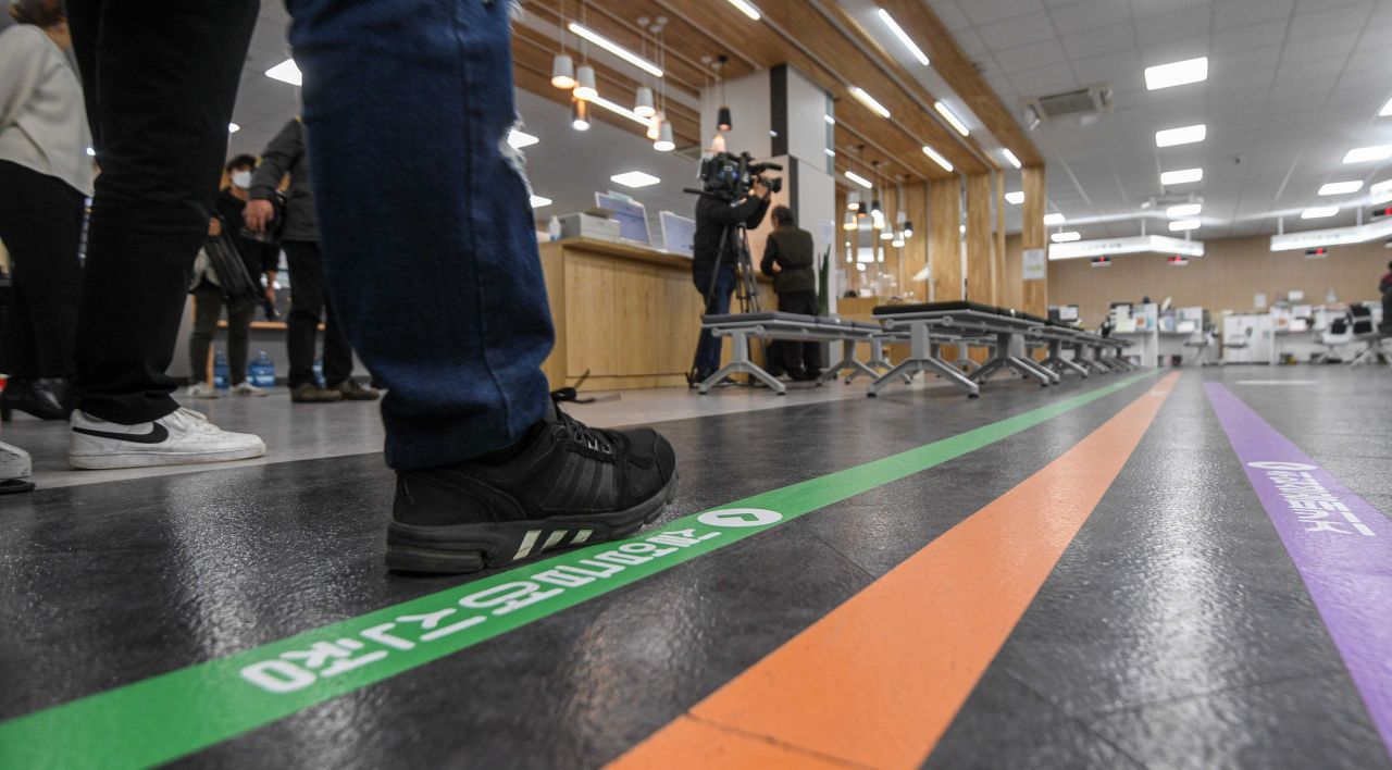 코로나19 장기화에 따른 고용 충격이 심화되고 있는 지난 2월3일 서울 영등포구 남부고용센터를 찾은 시민이 실업급여 신청 상담창구로 이동하는 모습./강진형 기자aymsdream@