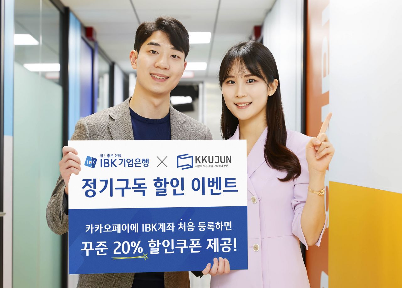 [아시아경제 김진호 기자] IBK기업은행은 ‘꾸준(KKUJUN)’과 함께 ‘IBK X 꾸준 정기구독 20% 할인’ 이벤트를 진행한다고 17일 밝혔다. 이벤트 대상은 다음 달 말까지 기업은행 입출금 계좌를 카카오페이에 처음 등록한 고객이다.