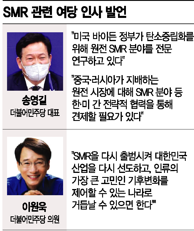 곳곳에서 반발이 지속되면서 현 정부의 탈원전 방침에도 최근 들어 변화가 감지되고 있다. 송영길 더불어민주당 대표뿐만 아니라 이원욱 민주당 의원도 "SMR를 다시 출범해 인류의 가장 큰 고민인 기후변화를 제어할 수 있는 나라로 거듭날 수 있게 해야 한다"고 강조했다.