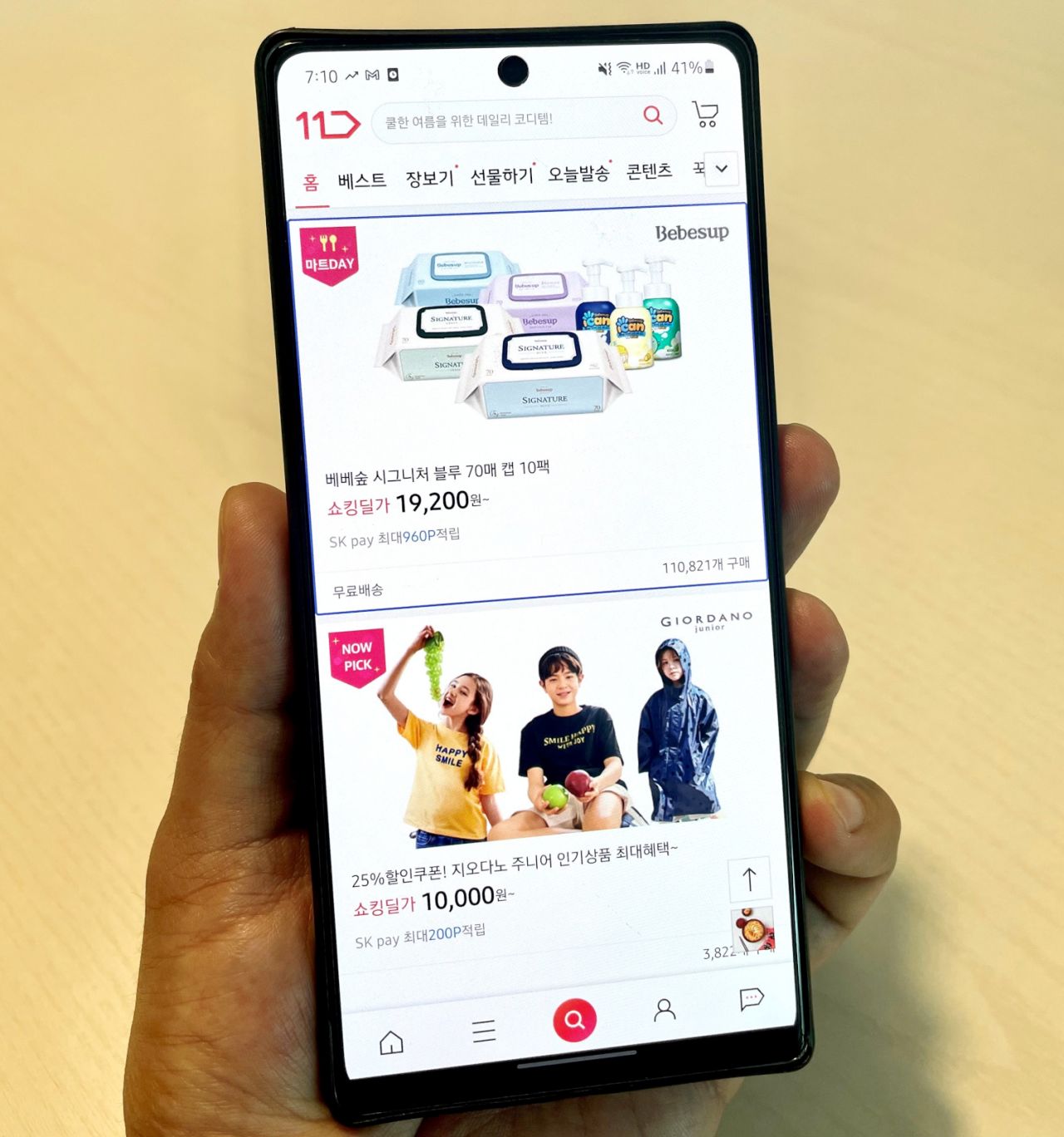 11번가는 스마트폰의 음성지원 기능을 활용해 각 영역에서 선택된 파란 박스 안에 있는 정보를 음성으로 들려준다.