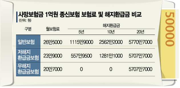 무ㆍ저해지 환급형 보험은 표준형 보험과 동일한 보장을 제공하면서 중도 해지 시 환급금이 적거나 없는 대신에 보험료가 저렴한 것이 특징이다.