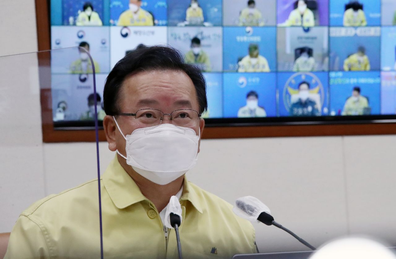 김부겸 국무총리가 26일 정부서울청사에서 열린 코로나19 대응 중앙재난안전대책본부(중대본) 회의에서 발언하고 있다. [이미지출처=연합뉴스]