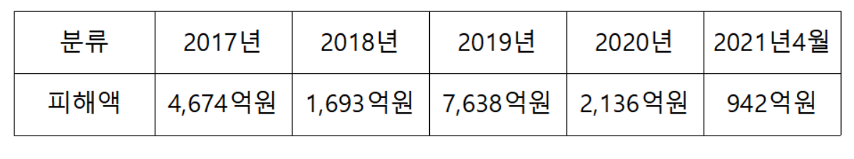 26일 윤창현 국민의힘 의원실이 경찰청으로부터 제공 받은 자료에 따르면 2017년부터 지난달까지 가상화폐 관련 범죄행위 피해금액은 총 1조7083억원으로 집계됐다. 가상화폐 투자 열풍이 불던 2017년에만 4674억원에 달할 정도였다. 이듬해인 2018년에는 가상화폐 가격이 폭락하는 침체기에 들어서면서 피해금액이 1693억원으로 줄었다. 하지만 2019년부터 가상화폐가 재조명받으며 피해가 눈덩이처럼 불어났다. 그 해에만 7638억원에 달할 정도였다. 지난해에도 2136억원으로 집계됐다. 다시 가상화폐 가격 급등세가 시작된 올해는 지난달 기준 942억원으로 추산됐다. 이번에 3조9000억원대 사기 사건 금액을 합치면 가상화폐 관련 사기 규모는 6조원에 육박하게 된다.