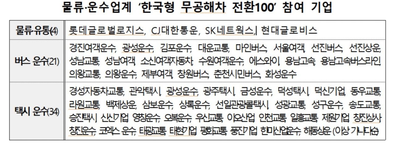 이번 물류·운수업계의 선언에 따라 한국형 무공해차 전환100 참여기업은 총 111개사로 늘었다. 이들 기업은 2030년까지 총 129만 대 이상의 차량을 전기·수소차로 전환할 계획이다.