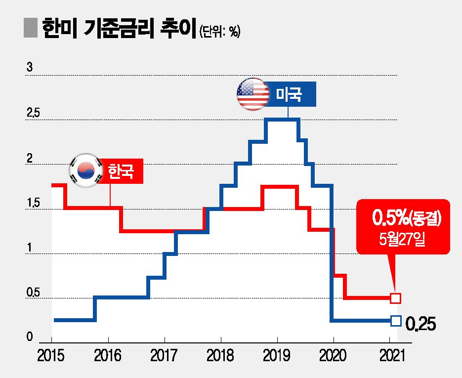성장률과 물가 전망치를 올려잡은 만큼 연내 금리인상 가능성도 커졌다는 평가가 나온다. 안동현 서울대 경제학부 교수는 "미국·유럽의 락다운(봉쇄)이 거의 해제됐고 집단면역이 가시화하고 있다"며 "미국경제가 소비를 중심으로 빠르게 회복돼 우리 수출도 더 늘며 4%성장이 가능해보인다"고 밝혔다. 이어 "미국은 올해 금리인상보단 테이퍼링(채권매입 축소)을 먼저 시도하겠지만 우리가 먼저 금리를 올릴 가능성도 높다"며 "인상 시점이 3분기로 앞당겨질 가능성도 배제할 수 없다"고 전했다. 이인호 서울대 경제학부 교수도 하반기 중 0.25%포인트 금리인상을 점치고, "백신 인센티브 도입시 내수도 더 부양될 수 있다"고 말했다.