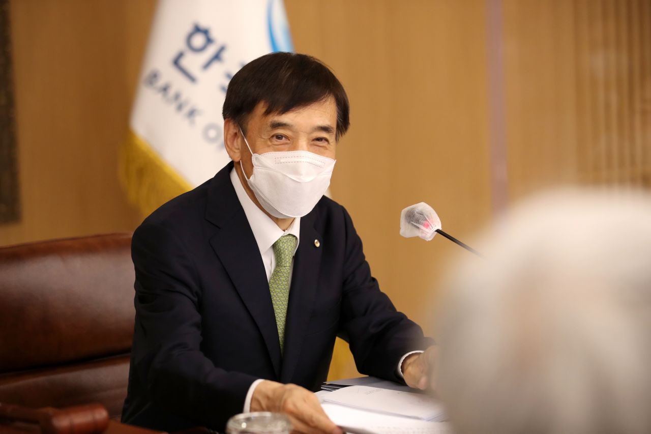 이주열 한국은행 총재가 27일 오전 서울 중구 한국은행에서 열린 금융통화위원회 본회의에서 회의를 주재하고 있다.