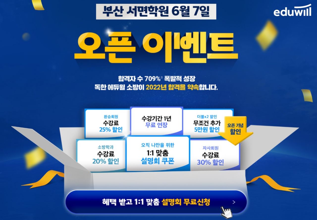 “독한 에듀윌 소방 서면학원에서 2022년 합격을 위한 특급 혜택 받아가세요”