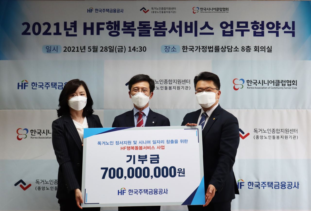 29일 주금공에 따르면 전일 독거노인종합지원센터, 한국시니어클럽협회와 체결한 ‘HF행복돌봄서비스’ 협약에 의해 서울·부산·경기지역의 만 60세 이상 독거노인 2000명에 돌봄서비스가 제공된다.