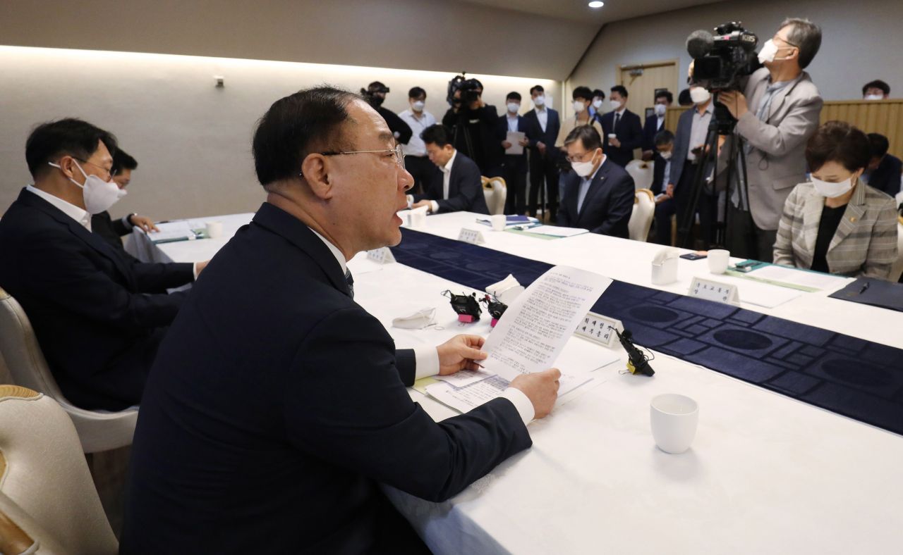 홍남기 경제부총리 겸 기획재정부 장관이 5일 서울 종로구 정부서울청사에서 열린 제1차 부동산시장 점검 관계장관회의에서 발언하고 있다. /문호남 기자 munonam@