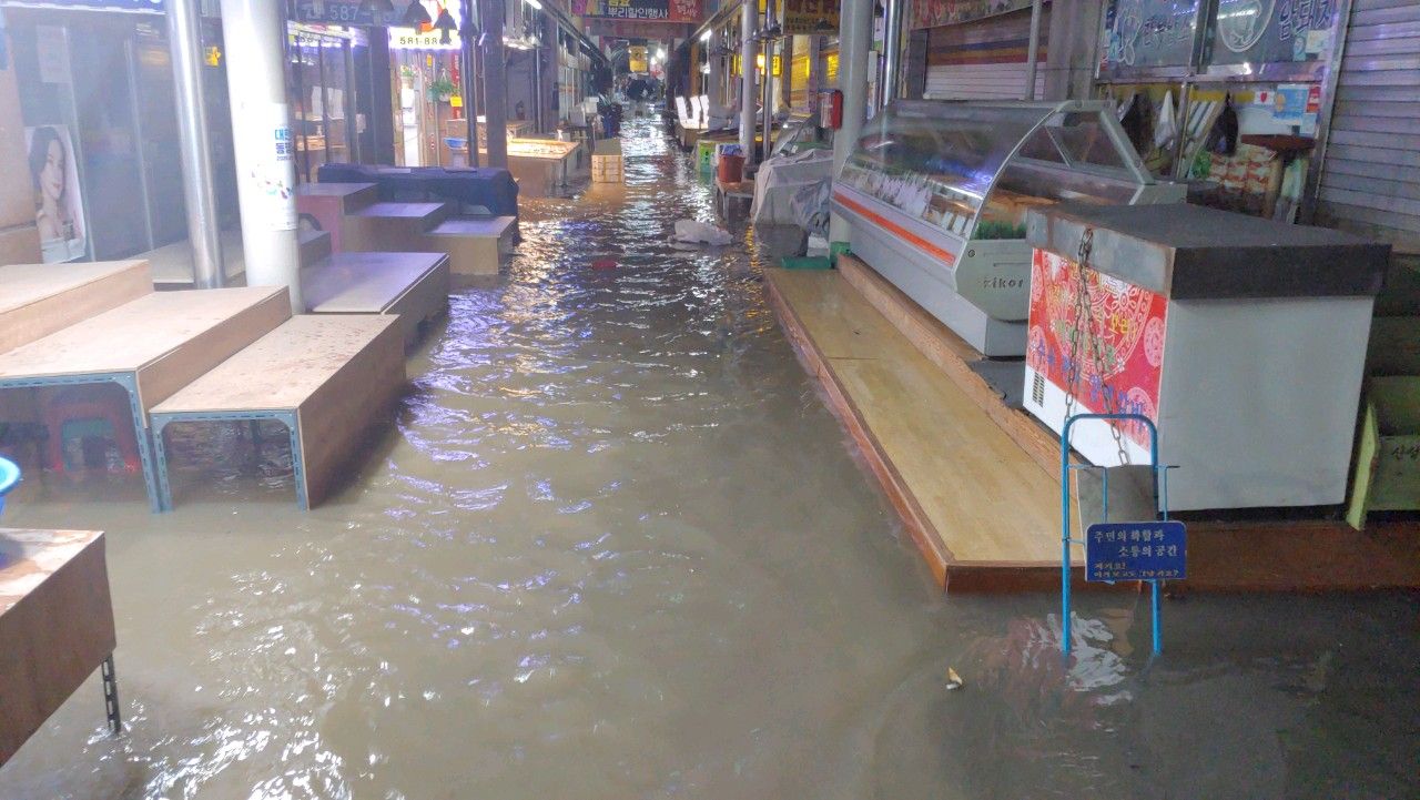 집중호우로 침수 피해를 입은 대전 산성전통시장 모습(사진=상인회)