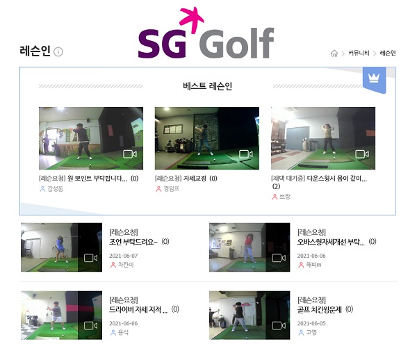 방법은 간단하다. SG골프 매장에서 로그인 후 플레이를 하면 본인의 스윙 영상이 제공된다. 제공된 스윙 영상을 SG골프 홈페이지와 앱에 있는 ‘스윙 뽐내기’ 게시판에 업로드하면 된다. SG골프의 회원들과 프로들이 해당 게시판에 있는 스윙 영상을 보며 문제점과 해결책을 댓글로 알려주는 서비스다.