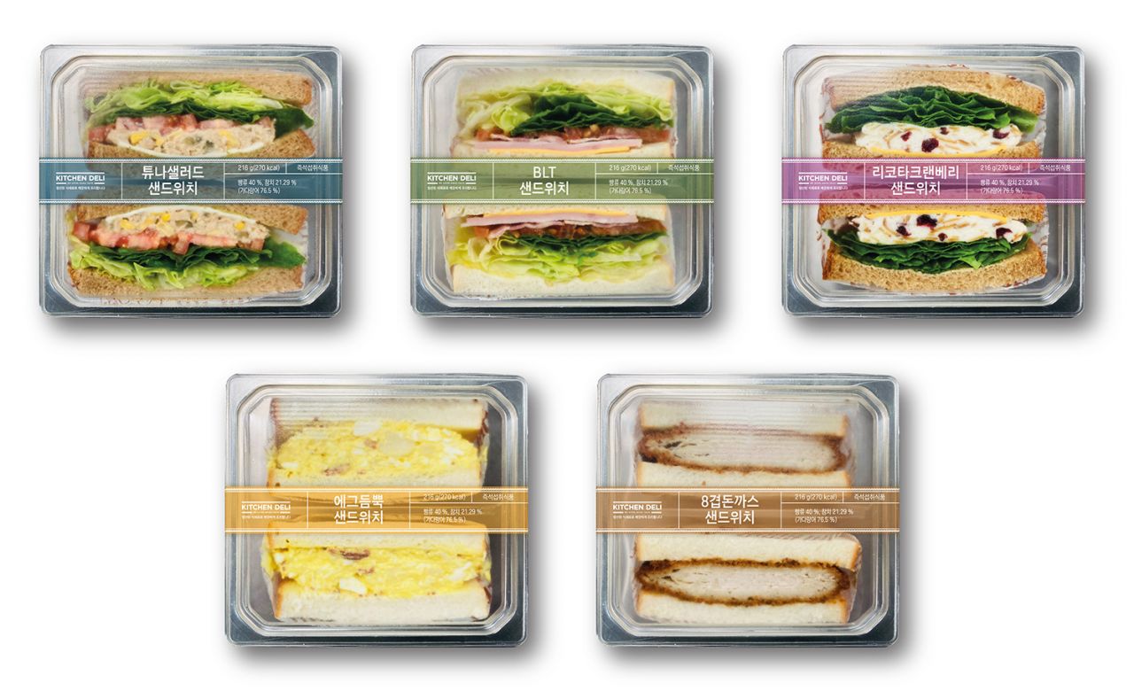 먼저 신세계푸드는 지난 3월부터 기존 이마트에서 판매해오던 샌드위치를 업그레이드 리뉴얼 한 ‘BELT 샌드위치’, ‘에그듬뿍 샌드위치’, ‘리코타 크렌베리 샌드위치’, ‘튜나 샐러드 샌드위치’, ‘9겹 돈까스 샌드위치’, ‘통새우 랩’ 등 7종을 선보였다.
