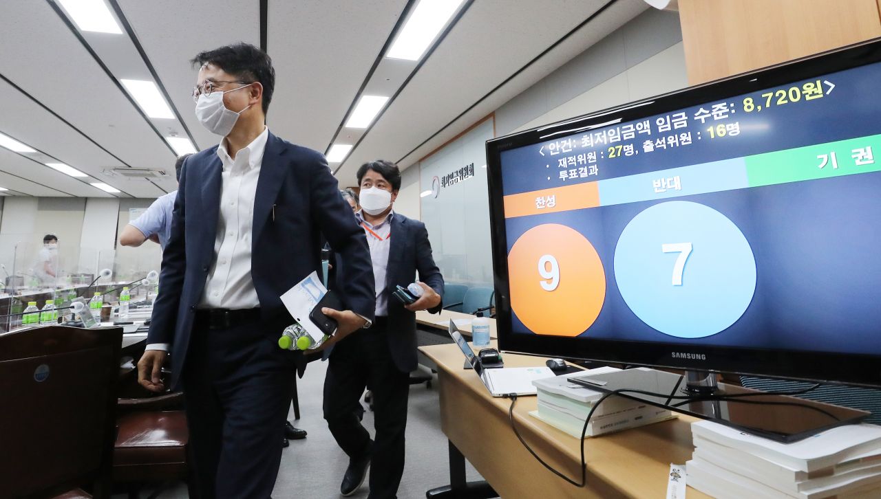 [아시아경제 김보경 기자] 내년에 적용될 최저임금이 8720원으로 최종 확정됐다. 내년 최저임금은 신종 코로나바이러스감염증(코로나19) 여파로 역대 최저 인상률(1.5%)을 기록하게 됐다.