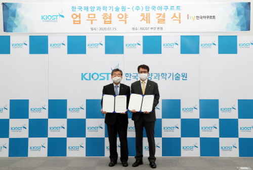 야쿠르트가 한국해양과학기술원(이하 KIOST)과 ‘해양미세조류 유래 인지기능 개선소재 산업화‘를 위한 업무협약을 체결했다. 지난달 15일, KIOST 본원에서 진행한 협약식에는 한국야쿠르트 김병진 대표이사와 KIOST 김웅서 원장을 비롯한 관계자 10여 명이 참석했다.