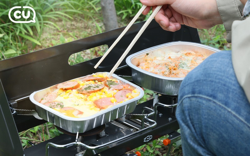 CU의 캠핑 간편식 시리즈는 초간편 눈꽃볶음밥, 모둠볶이, 콘치즈쏘시지 3종이다. 해당 상품들은 내용물을 알루미늄 용기에 담아 버너로 직접 가열할 수 있도록 만든 것이 특징이다.
