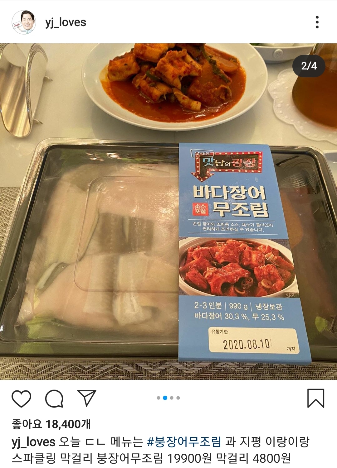 정용진 신세계그룹 부회장은 9일 개인 SNS 계정에 '맛남의광장 바다장어 무조림' 밀키트를 올리며 제품 홍보에 나섰다. (사진=SNS 캡처)