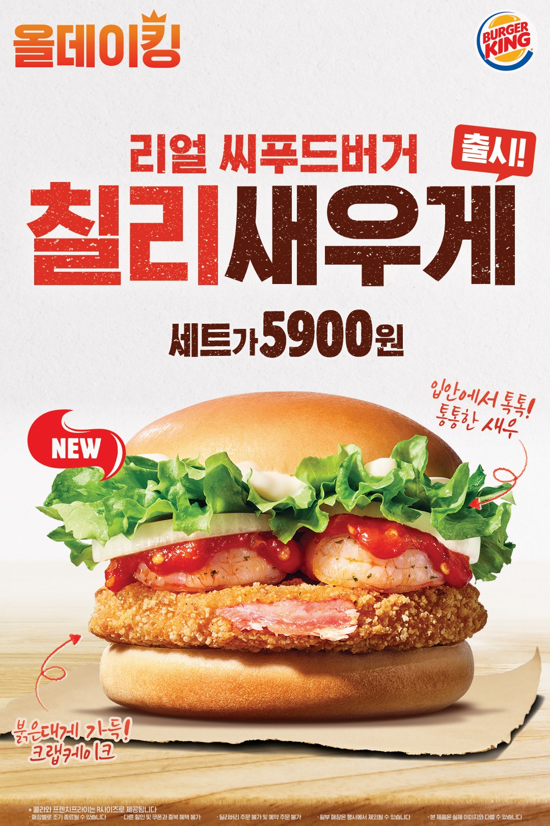 [아시아경제 이선애 기자] 버거킹이 대표 가성비 메뉴인 ‘올데이킹’을 리뉴얼하고 ‘칠리새우게’ 신제품을 출시한다고 10일 밝혔다.