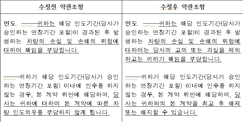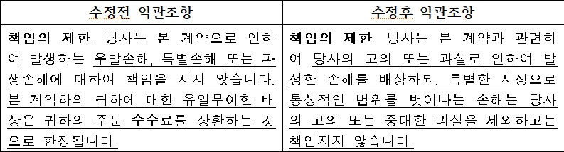이외에도 ▲테슬라가 고객 주문을 취소할 때의 사유를 구체적으로 규정(최종 소비목적 이외 용도로 판매)하고 ▲테슬라의 재량뿐 아니라 민법, 개인정보보호법 등을 고려해 계열사에 계약을 양도하게 하며 ▲서울중앙지방법원만 모든 분쟁을 관할토록 하는 게 아니라 민사소송법에 따라 관할 법원을 정하도록 했다.