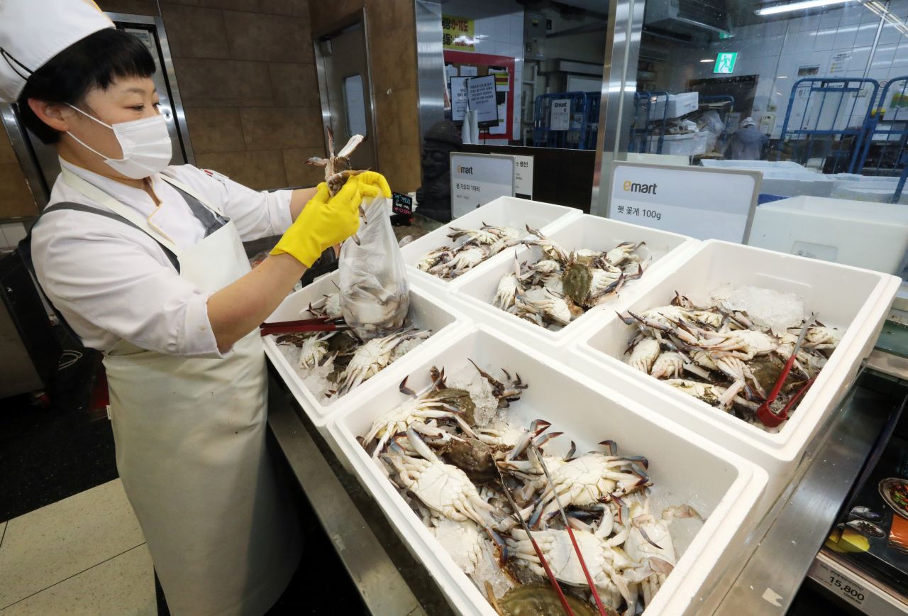 이마트는 9월 2일까지 4일간 햇 꽃게 100g 당 980원에 판매한다. 지난 27일 기준 노량진 수산시장 숫꽃게 경매 시세가 ㎏ 당 1만5545원인 것을 고려하면, 도매가보다 약 37% 저렴한 수치다.