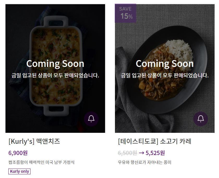 31일 관련 업계에 따르면 마켓컬리 애플리케이션에서는 오전 10시 기준 '샐러드판다 병 샐러드' '컬리스 동물복지 우유 900㎖' '노르웨이 생연어회 120g' '바븐 완도 전복' '비비고 도톰한 삼치 구이' 등이 모두 품절된 상태다. '컬리스 맥앤치즈'와 '테이스티도쿄 소고기 카레' 등 가정간편식(HMR) 제품들도 판매가 조기 마감됐다.