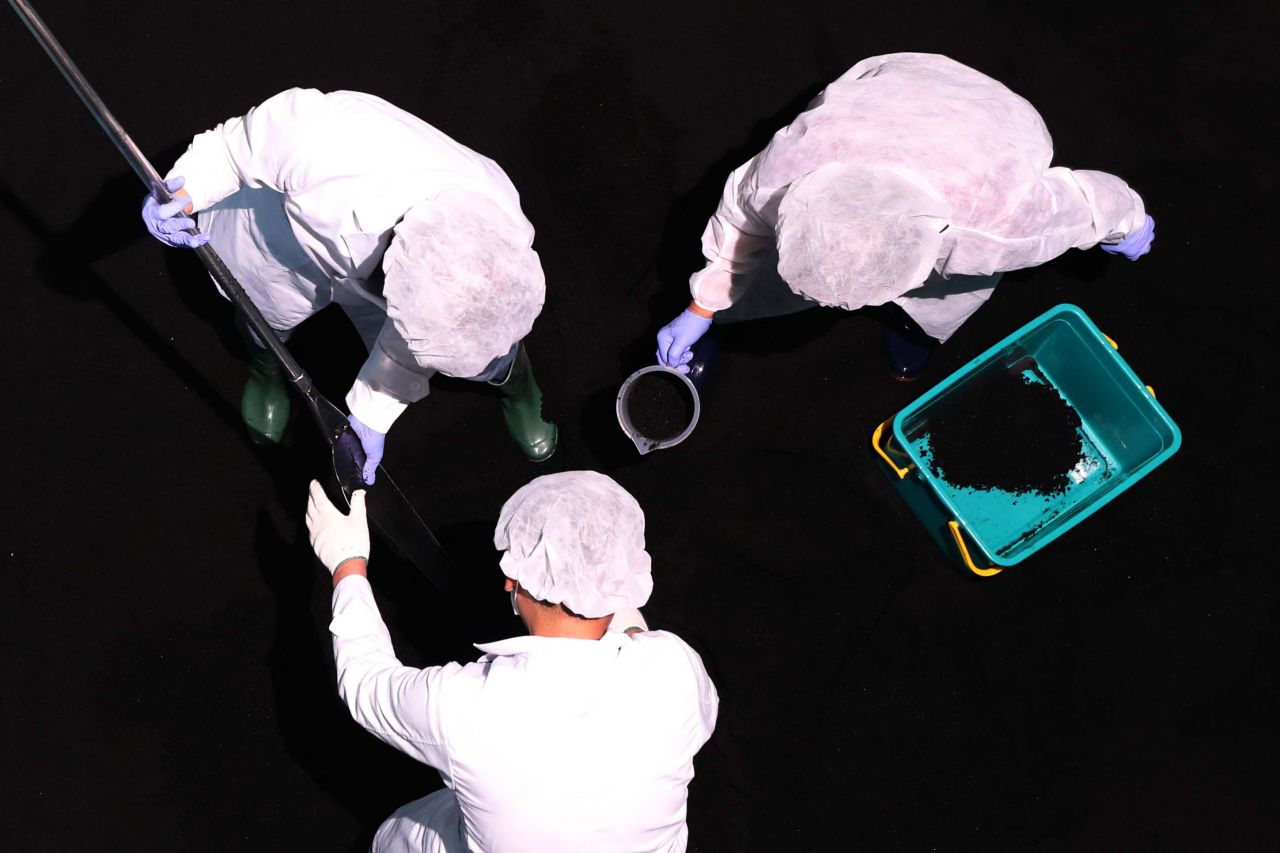 서울 성동구 뚝도 아리수정수센터 활성탄 흡착지실에서 관계자들이 시료를 채취하고 있다. /문호남 기자 munonam@