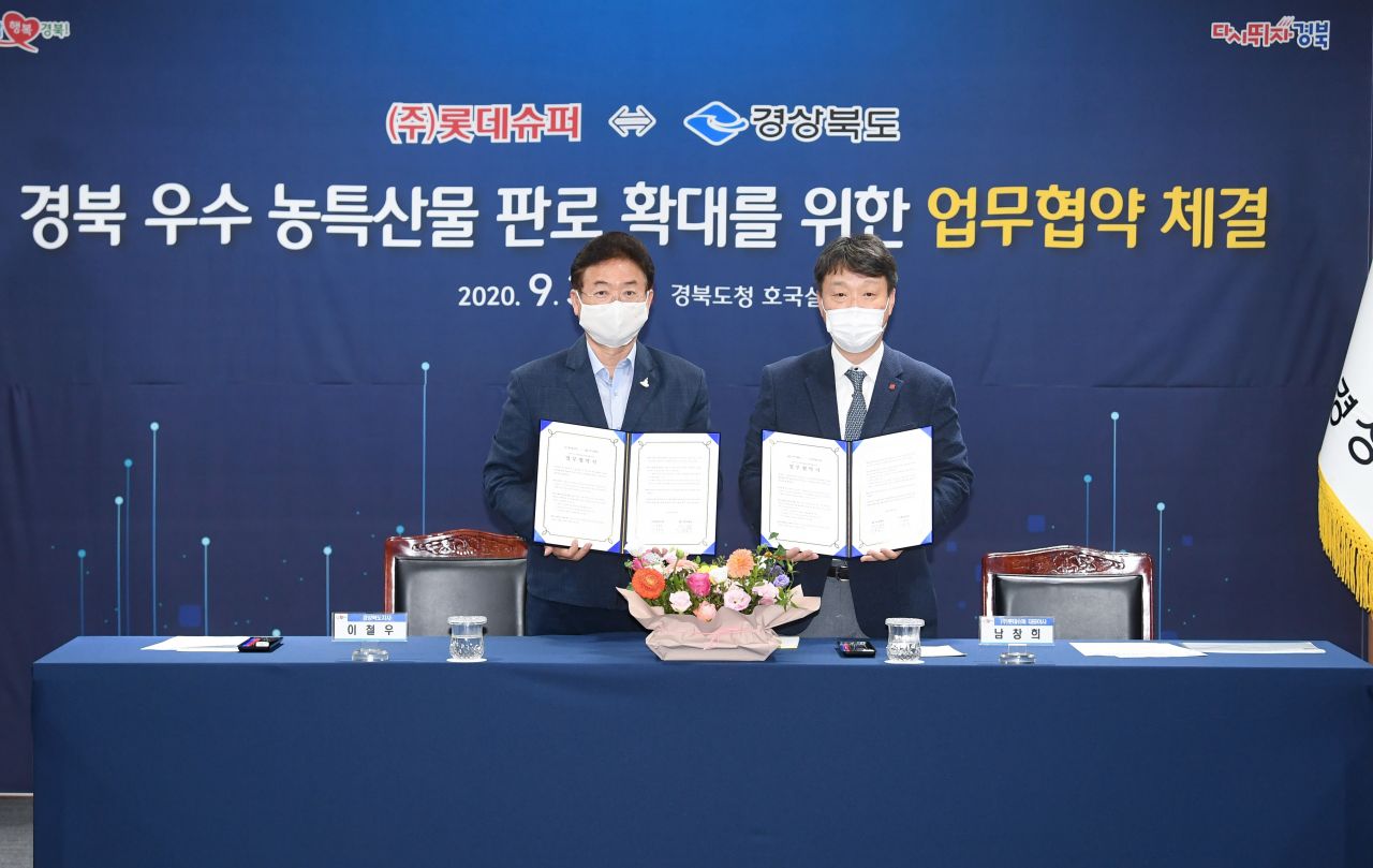 이번 협약식에는 경상북도 이철우 도지사와 남창희 롯데슈퍼 대표가 참석해 상호 협력 방안을 다졌다. 이번 업무협약은 신종 코로나바이러스감염증(코로나19) 장기화와 긴 장마의 피해 등으로 어려움을 겪고 있는 농가를 돕기 위해 농·특산물 판매를 촉진하는 한편 비대면 소비문화 확산 추세에 맞춰서 지역 농·특산물 온라인 판매 활성화를 위해 마련된 자리다.