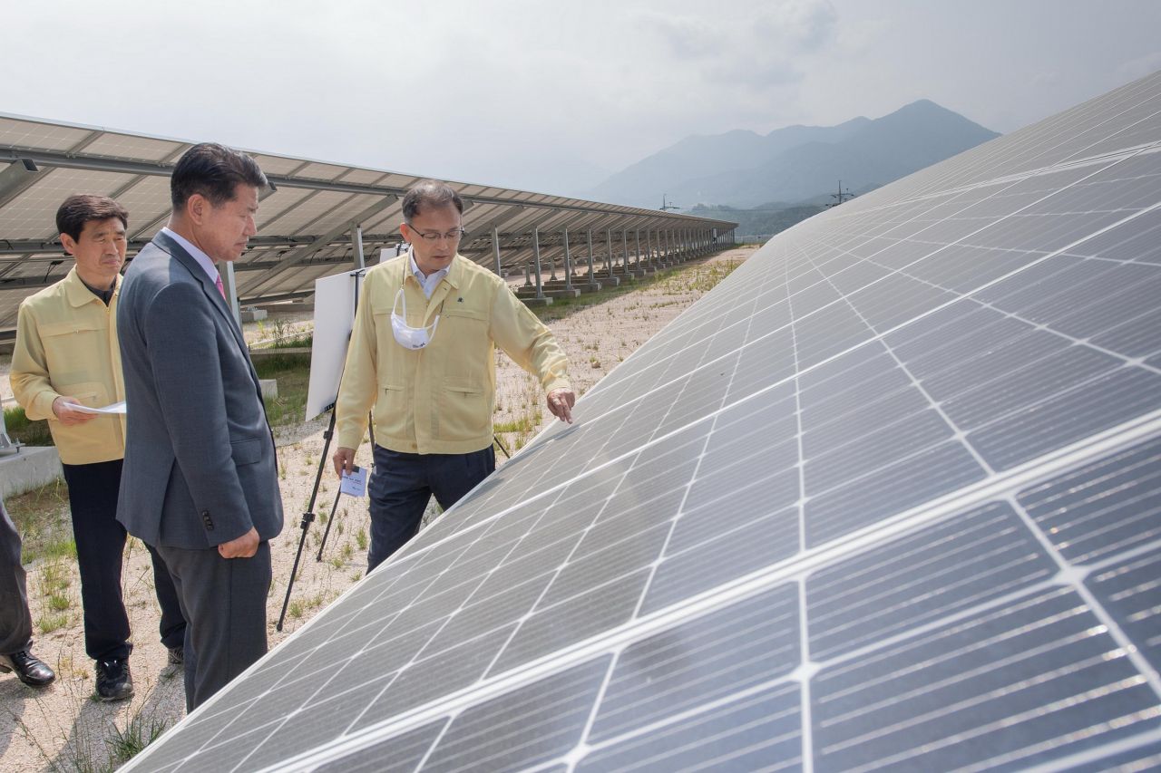 박종호 산림청장이 지난 6월5일 태양광 발전시설을 점검하는 모습.(사진제공=산림청)