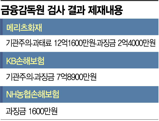 [아시아경제 오현길 기자] 금융당국이 보험금을 부당하게 삭감하거나 지급하지 않은 메리츠화재와 KB손해보험, NH농협손해보험에 대해 기관주의와 과징금 처분을 내렸다.