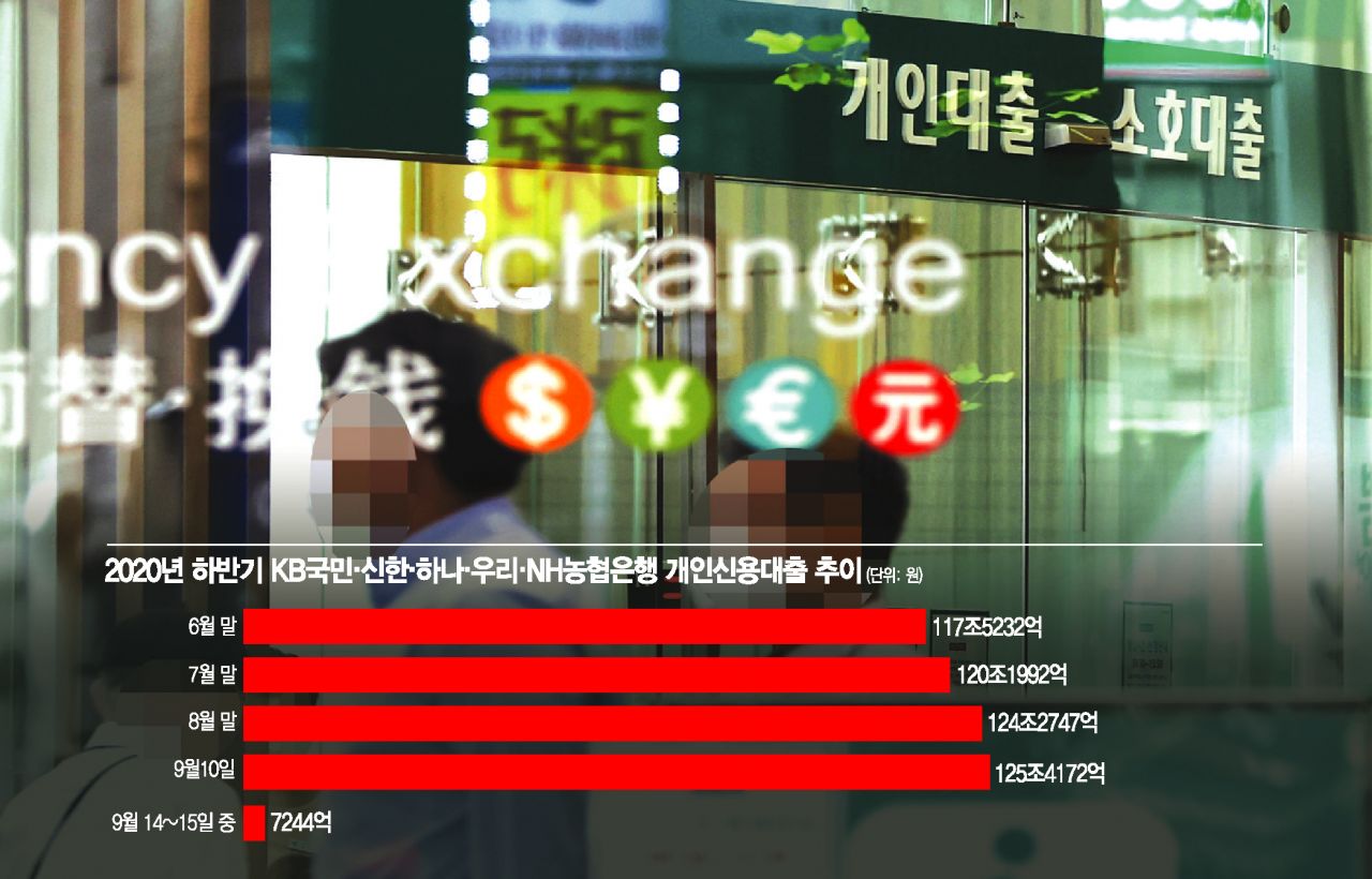 이달 들어서도 지난 10일까지 불과 열흘 만에 1조1425억원이 늘었다. 대출 규제의 움직임이 시작되자 늦기 전에 대출을 확보해두려는 이들이 몰리면서 지난 14~15일 이틀간 5대 은행 신용대출이 7244억원이나 불어나는 현상도 빚어졌다.