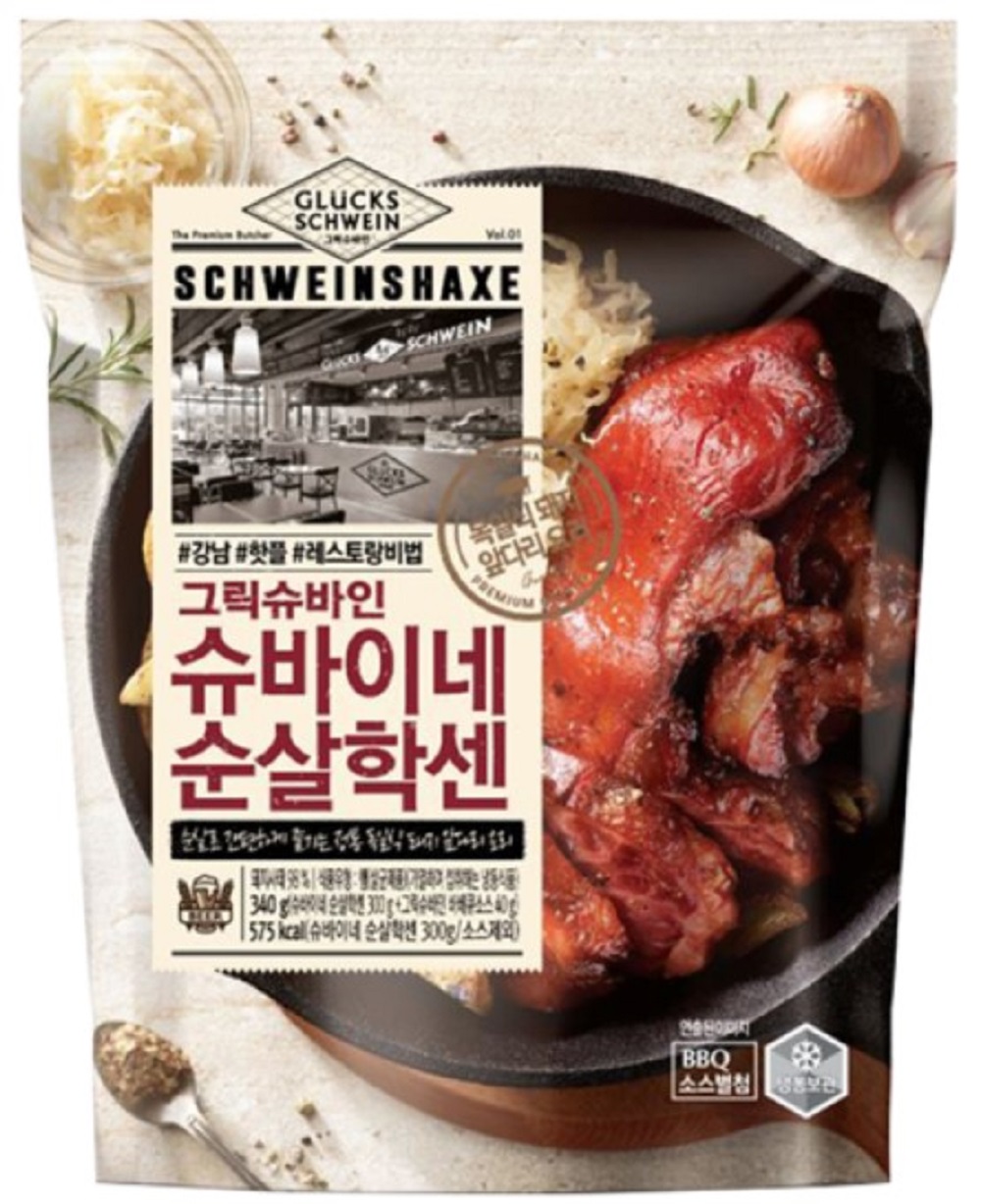 그릭슈바인 슈바이네 순살학센은 돼지 앞다리에 7가지 향신료를 넣고 48시간 저온 숙성했으며, 3시간의 훈연 조리로 겉은 바삭하고 속은 촉촉하고 부드러운 식감을 자랑한다. 슈바이네 순살학센은 조리가 간편해 해동 후 에어프라이어나 전자레인지, 오븐 등으로 데우기만 하면 독일 학센을 바로 즐길 수 있다.