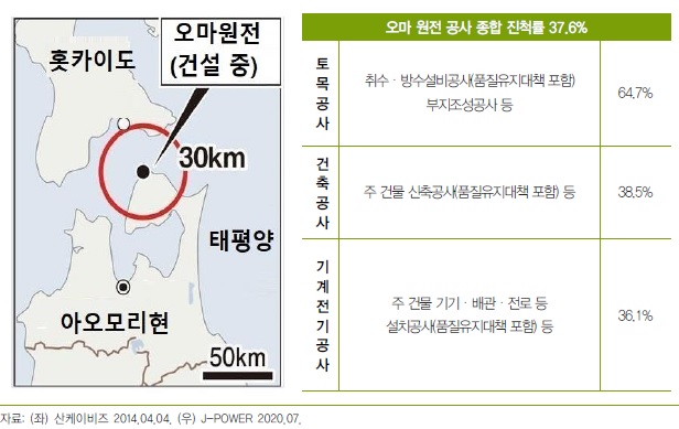 오마원전은 2008년 5월 착공해 2011년 3월 동일본 대지진으로 원전 건설 공사를 중단한 시설이다. 2012년 10월 일부 공사 재개 후 2014년 신규제 적합성 심사를 신청하여 규제위의 심사를 받고 있고, 지금은 공사가 중단됐다.