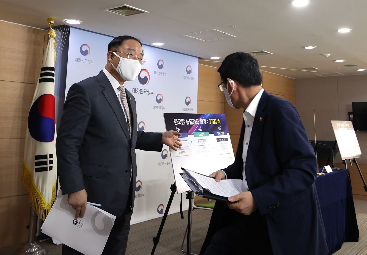 ◆한국판 뉴딜 투자가이드라인 공개= 홍남기 부총리 겸 기획재정부 장관은 28일 서울 광화문 정부서울청사에서 열린 '제4차 한국판 뉴딜 관계장관회의 겸 제17차 비상경제 중앙대책본부회의'를 주재하고, 이 같은 투자 가이드라인을 공개했다. 이는 이달 초 정부가 밝힌 ▲정책형 뉴딜펀드 ▲뉴딜 인프라펀드 ▲민간 뉴딜펀드 등 3가지의 국민참여형 뉴딜펀드를 활성화하기 위한 후속조치다.