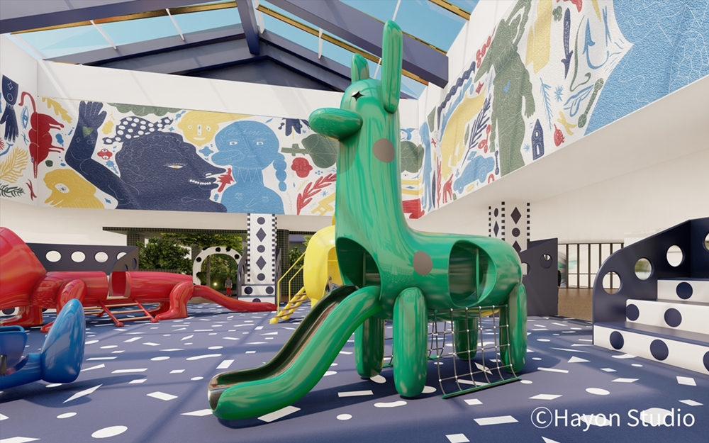총 1653㎡(약 500평) 규모의 모카 가든은 ‘하이메 아욘 가든’, ‘모카 라이브러리’, ‘모카 플레이’ 등 총 3개의 시설로 구성된다. 하이메 아욘 가든은 ‘이야기를 건내는 조각정원’을 콘셉트로 해 하이메 아욘이 직접 디자인한 강아지·원숭이 등 8점의 조각 작품들이 들어선다.