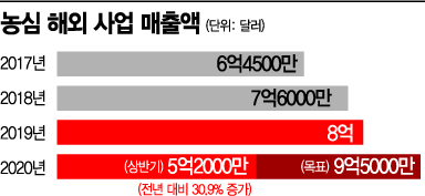 농심 해외 매출 10억달러 육박K라면의 선봉에는 1위 업체 농심이 있다. 농심의 올해 해외 매출 목표는 작년보다 약 20% 많은 9억5000만달러다. 상반기 해외 사업매출은 5억2000만달러로 지난해 매출 8억달러의 65%를 이미 달성했다. 무난히 목표를 달성할 것으로 예상된다. 매출이 급증한 배경에는 주력 시장인 미국에서의 성공 덕분이다. 상반기 미국 법인 매출액은 전년 대비 35% 성장한 1억6400만달러로 사상 최대 실적을 기록했다. 1등 공신은 단연 '신라면'이다. 신라면은 지난 6월 미국 뉴욕타임즈의 제품 리뷰 사이트 와이어커터에서 세계 최고의 라면 1위에 선정됐다.
