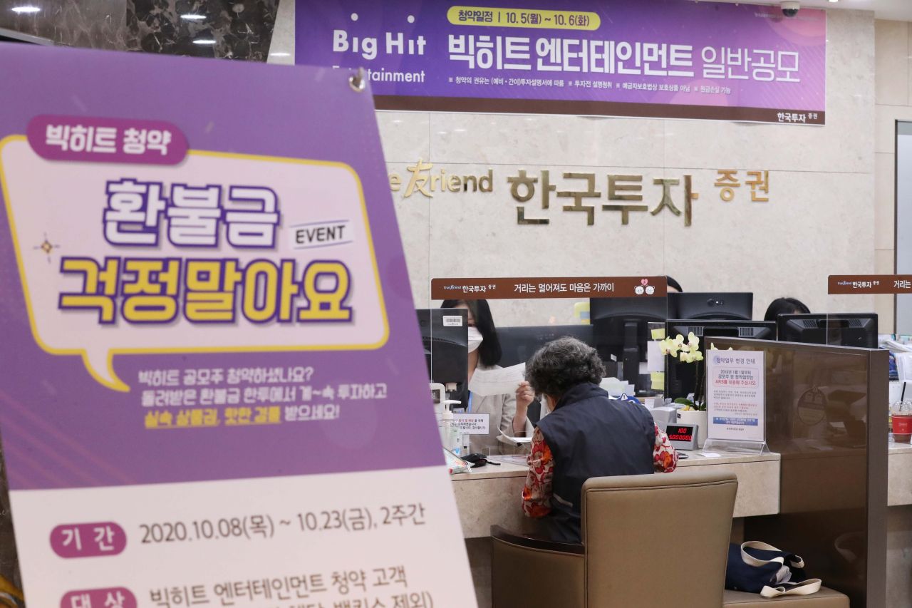 그룹 방탄소년단의 소속사 빅히트엔터테인먼트의 일반 공모주 청약 마지막 날인 6일 서울 영등포구 한국투자증권 본사 영업부에서 개인투자자들이 청약 상담을 받고 있다. 이날 일반 공모청약이 끝나면 빅히트는 오는 15일 코스피 시장에 상장할 예정이다. / 사진출처 = 아시아경제