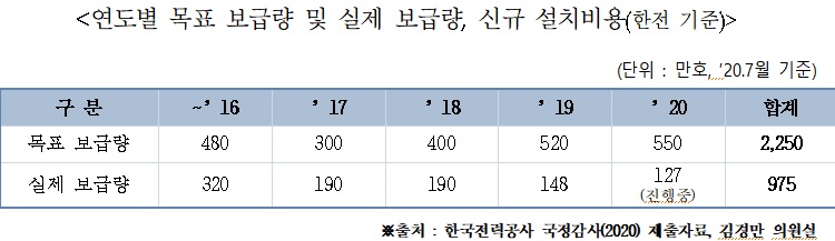 올해 기준 AMI의 목표 보급량은 총 2250만호지만, 현재 975만호로 목표량 대비 43.3%에 그치는 것으로 확인됐다.
