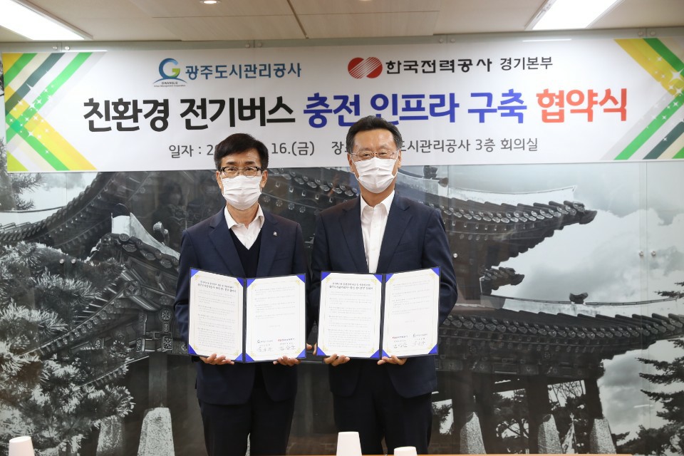한국전력 경기본부는 16일 경기도 광주시의 광주도시관리공사와 '전기버스용 충전인프라 제공 및 이용에 관한 협약'을 체결했다고 밝혔다.