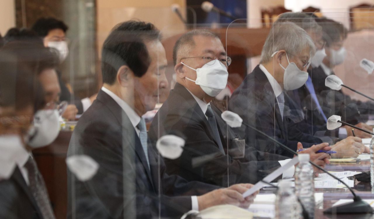 정세균 국무총리가 15일 서울 종로구 정부서울청사에서 열린 '제2차 수소경제위원회'에 참석해 모두발언 하고 있다./강진형 기자aymsdream@