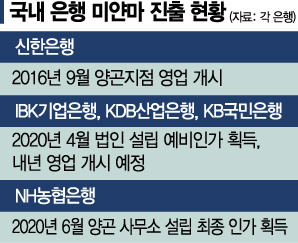 현재 미얀마에는 300여개 우리 기업이 진출해 있다. 수도인 양곤 인근에 한국 기업 전용 산업공단도 만들고 있는 중이어서 앞으로 우리 기업과 은행의 진출이 더 활발해질 전망이다.