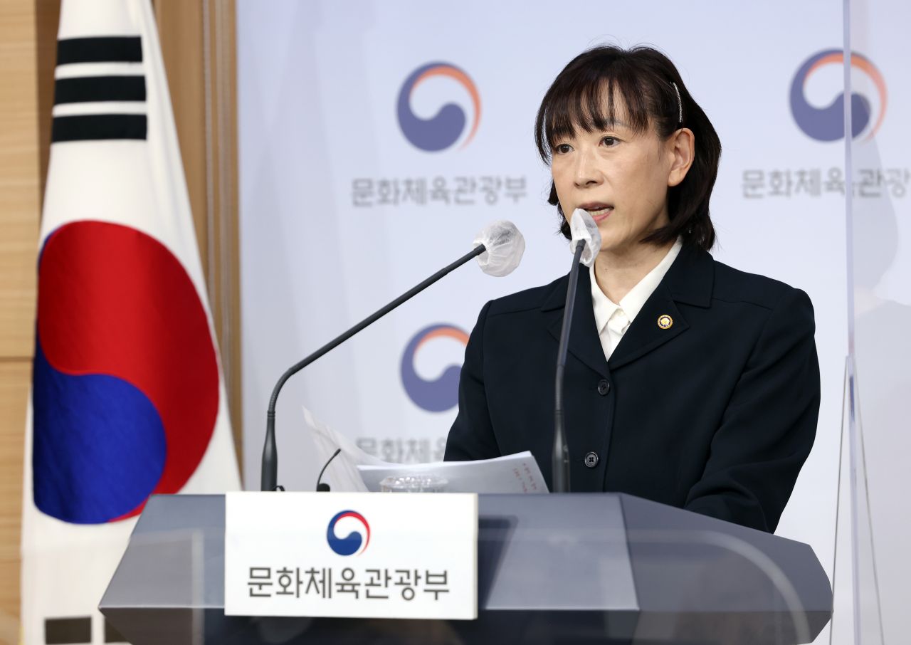 최윤희 문화체육관광부 제2차관이 21일 서울 종로구 정부서울청사 별관 브리핑실에서 코로나19 상황으로 가을여행주간을 시행하는 대신 ‘여행을 간다면 안전하게 갈 것’을 당부하는 안전여행 캠페인과 관광업계 지원 대책에 대한 브리핑을 하고 있다.[사진=문체부 제공]