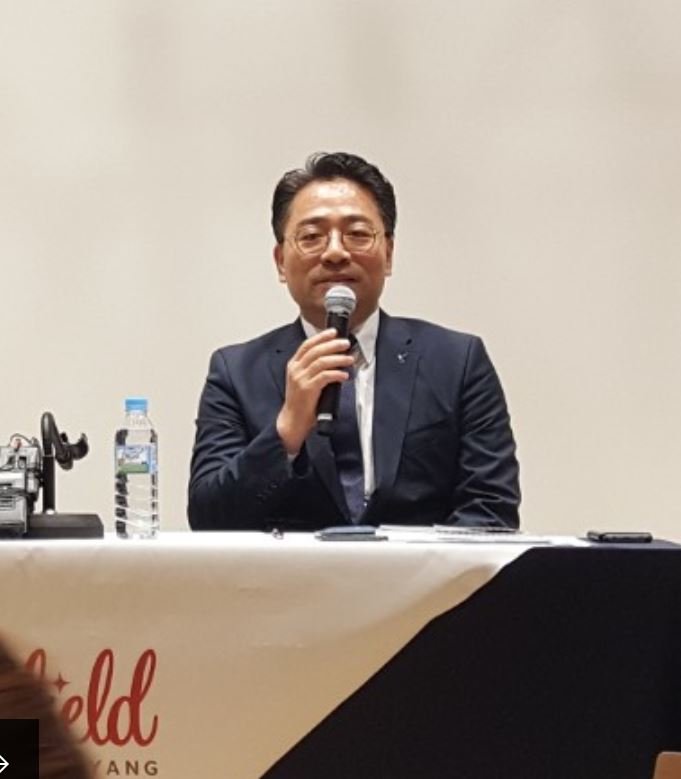 임영록 신세계프라퍼티 대표이사가 22일 국회 산업통상자원중소벤처기업위원회 국정감사에 지역 상생 협력, 골목상권 침해 문제 관련 증인으로 출석했다. 사진은 임영록 대표가 2017년 '스타필드 고양' 기자간담회에서 질의응답을 하고 있는 모습.