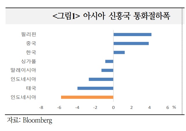 정부가 통화정책에 관여하고, 불확실성이 커지면서 인도네시아 루피아화 가치는 올해 5.4% 절하돼 아시아 통화 중 가장 약세를 보이고 있다. 외국인의 채권보유 비중은 2010년 이후 최저 수준(27%)으로 줄었다. 올해 들어서만 비중이 10%포인트 이상 축소됐다.