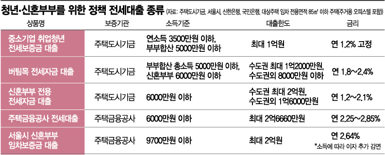 부부 전용 ‘버팀목 전세자금 대출’도 있다. 대출 신청인과 배우자의 합산 총소득이 5000만원 이하면 된다. 신혼부부, 2자녀 가구 등 조건에 따라 연소득 6000만원까지도 가능하다.