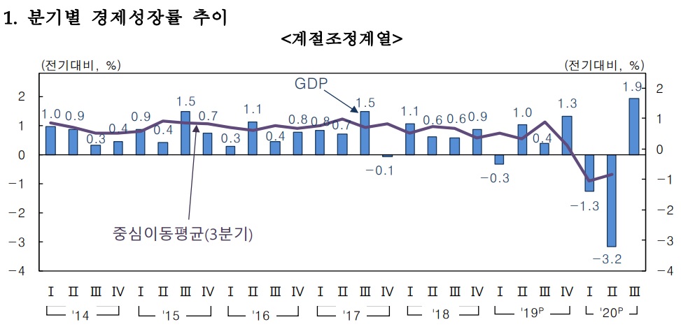 [아시아경제 김은별 기자] 우리나라의 3분기 경제성장률이 예상보다 큰 폭으로 반등했다. 2분기(-3.2%) 대비 수출이 회복되면서 기저효과가 있었던 덕이다.