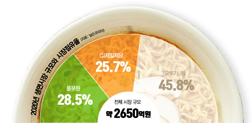 특히 풀무원은 공장 증설과 함께 생면 프리미엄화로 정체돼있는 국내 생면 시장에 새 바람을 불어넣겠다는 의지를 밝혔다. 현재 국내 생면시장 규모는 약 2650억원으로 3년여간 정체돼있는 상황이다. 가정간편식(HMR) 시장 전체가 연평균 20% 이상 성장하고 있는 것에 비하면 더딘 편이다.