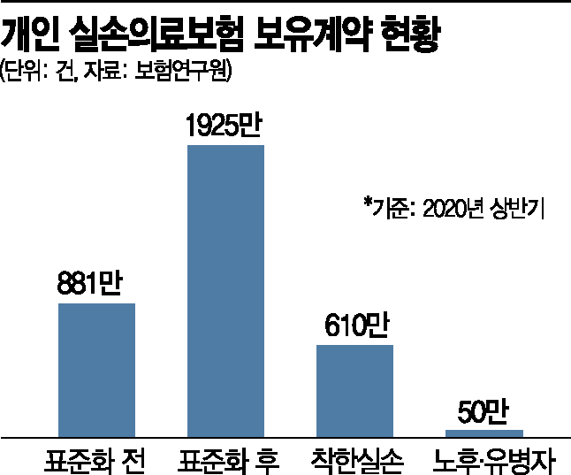 28일 보험업계에 따르면 상반기 기준 개인 실손보험 보유계약은 3466만건에 달한다. 이 가운데 표준화 전ㆍ후 실손보험은 약 2806만건으로 80%에 육박, 실손보험 계약의 대다수를 차지하고 있다.